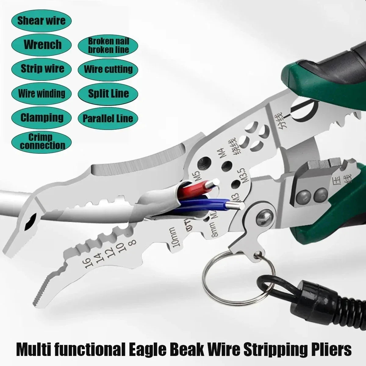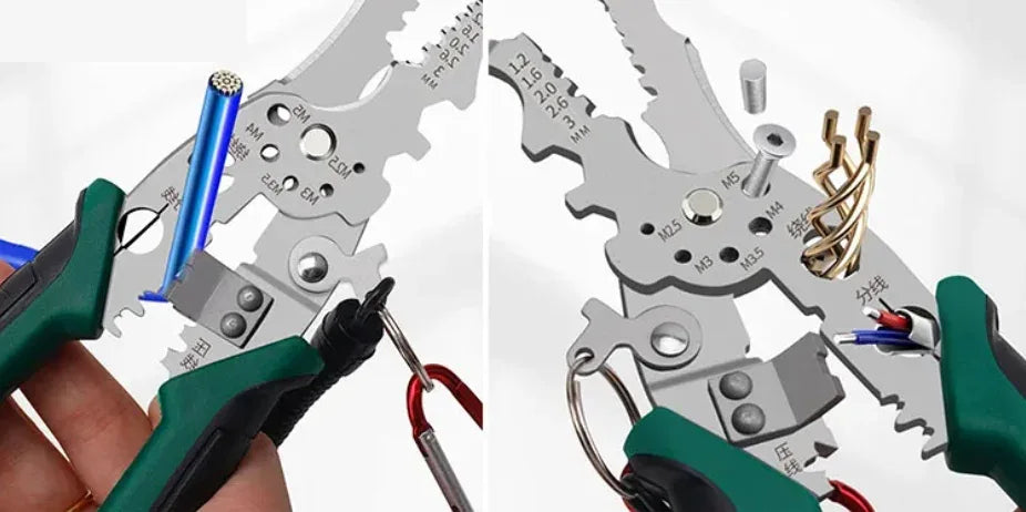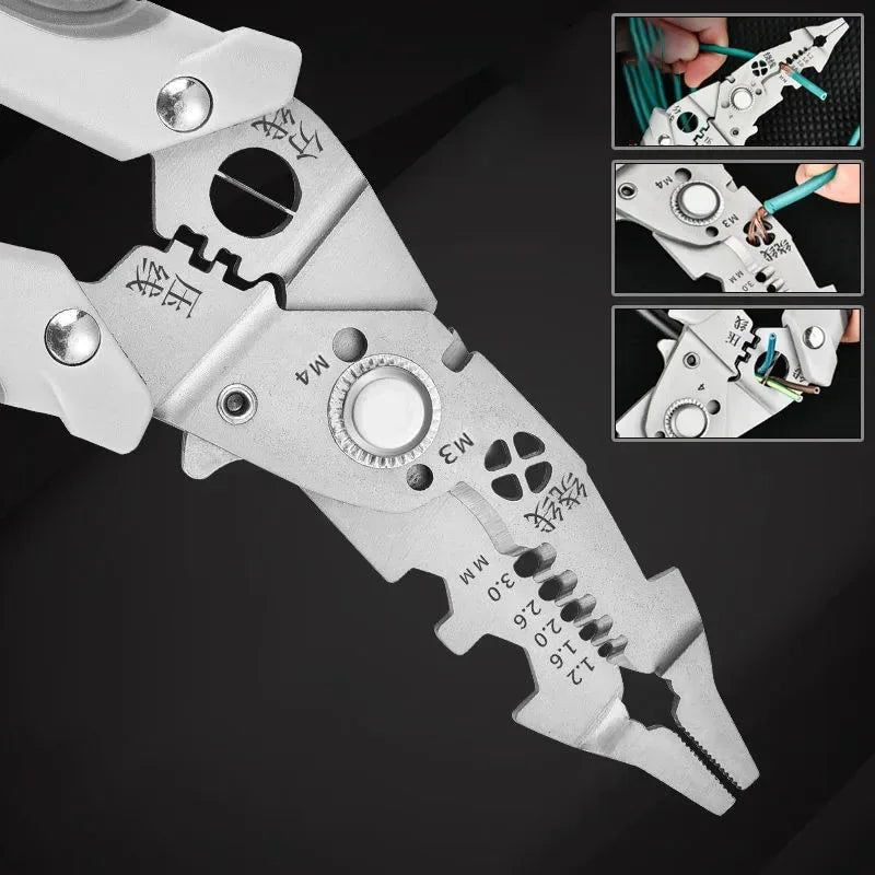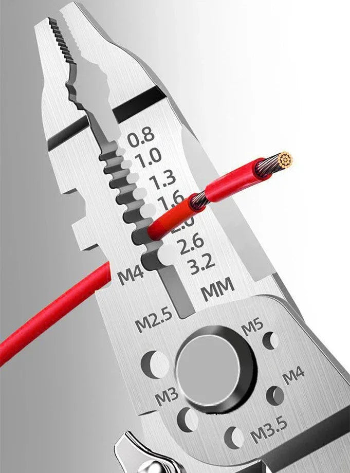 High-quality multifunctional wire stripper for electricians. Cuts, crimps, twists, and winds cables with precision. Perfect for professional & DIY use.